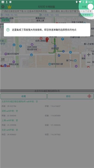 1、支持收藏和智能搜索需打卡位置