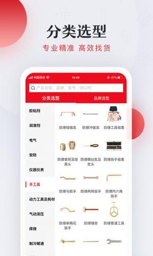 这款手机应用专为工业用品经销商打造,聚焦于工业用品的采购与批发服务。平台主打价格优势,商品均有现货供应,支持单件起订,新用户首单还能享受包邮福利。