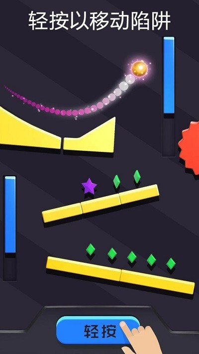 2、通过控制小球的弹跳完成关卡中的各种障碍物挑战。