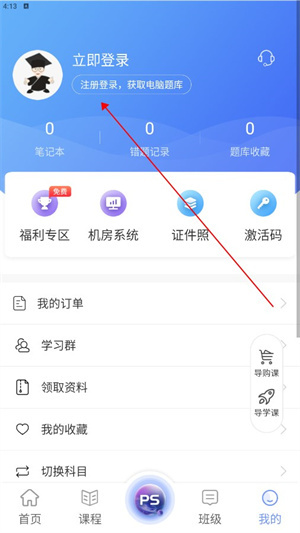 4、在信息页面里,点击上方注册登录按键。