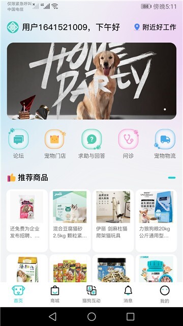 宠友道具备发布招聘、求职及宠物托运信息,提供宠物问诊服务,还有主人与猫狗互动、论坛交流以及求助等多种功能。