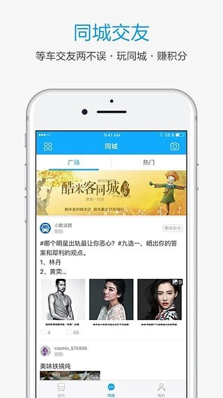 同城功能:让等车时光不再无聊,用积分兑换各类生活便利;等车的同时,还能知晓身边新鲜事、同城热点事,好玩有趣的故事,或许就发生在你等车的这一刻。