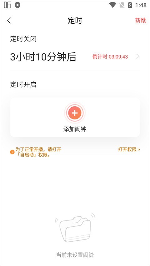 2、在音频播放页面,点击【小闹钟符号】即可设置开启/关闭。