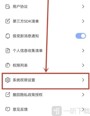 1. 启动乐兔清单应用,进入隐私设置界面,点击【系统权限设置】选项