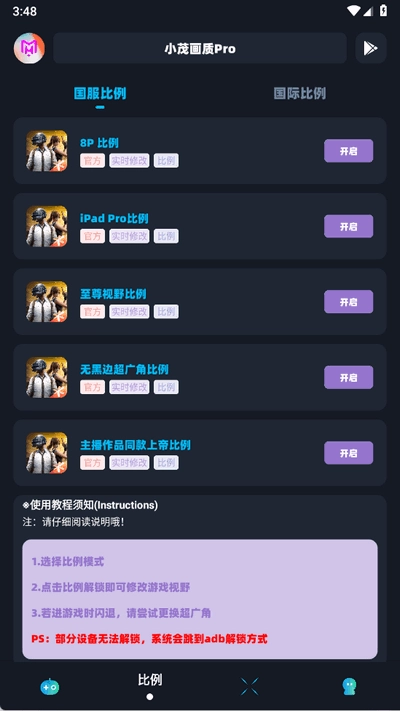 平台提供了简易的使用流程,用户只需安装后,通过激活卡密或完成简单任务即可轻松上手。软件操作设计简单,玩家可以一键切换版本及画质设置,省时省力。小茂画质Pro还具备智能优化功能,能够自动识别游戏场景内容,动态调整画质参数,以实现最佳的视觉效果。这种便捷与智能的结合,使得用户在享受游戏的能够轻松获得最佳的画质体验。