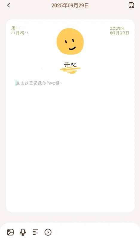 2、记录真实且丰富:记录时可以添加当日心情与天气,完整还原每一天的生活状态。并且支持文字、图片与语音多种记录方式,让日记内容生动多彩。