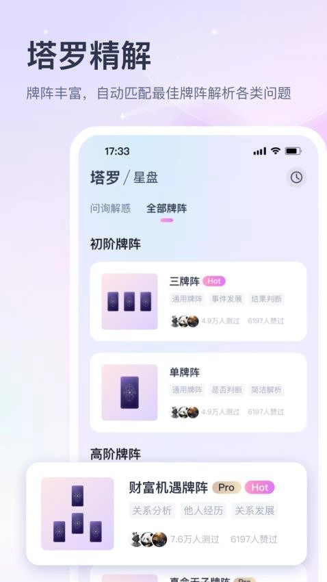 帮助用户可以自动匹配最佳牌阵,就可以在线专业全面的解析各类问题。