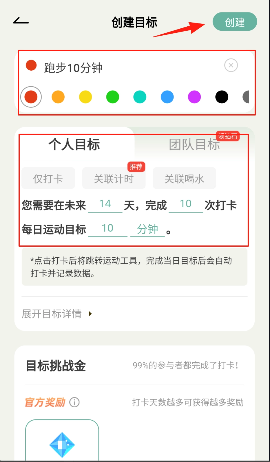 2、个性化管理方案:支持自定义目标名称、频次及打卡时间,无论是减肥记录还是运动追踪,均可根据个人需求灵活调整计划内容。