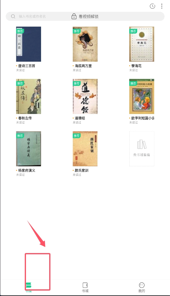 3、书架页面是管理核心,这里清晰展示每本书的阅读状态。未读过的书会有明显标识,方便制定阅读计划。空书架时别错过引导提示。