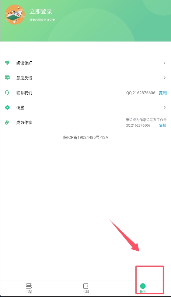 4、我的页面需要重视,登录后阅读记录才能在设备间同步。在这里可以反馈使用建议,也能通过QQ联系客服解决具体问题。