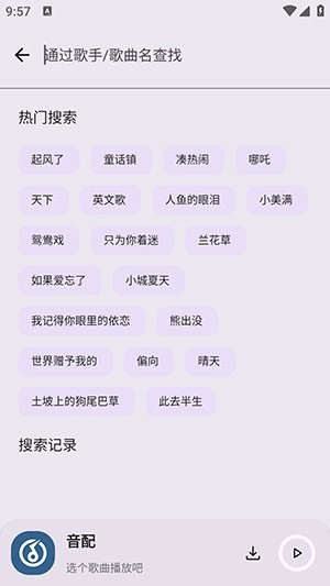 1、启动软件后,点击顶部的搜索栏,即可进入歌曲搜索界面