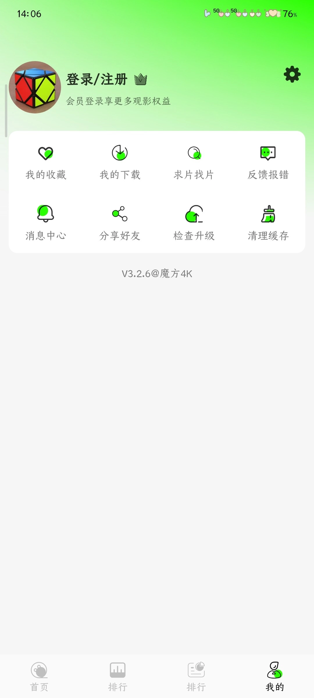 1、启动魔方4K影视应用,进入首页后点击右下角的“我的”选项。