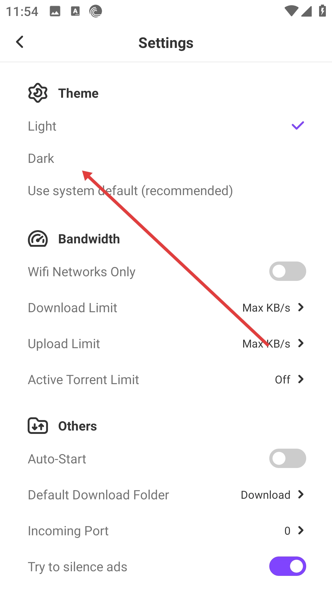 Bittorrent种子器 安卓中文版 深色模式设置