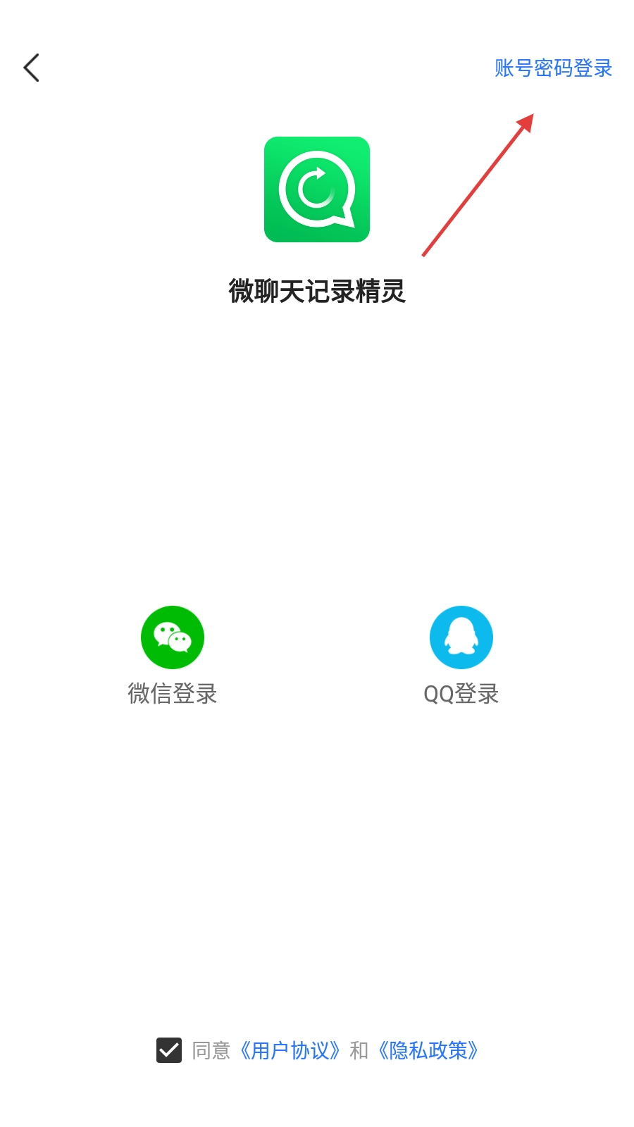 3、在登录界面,点击右上角【账号密码登录】,进入账号密码登录页面。