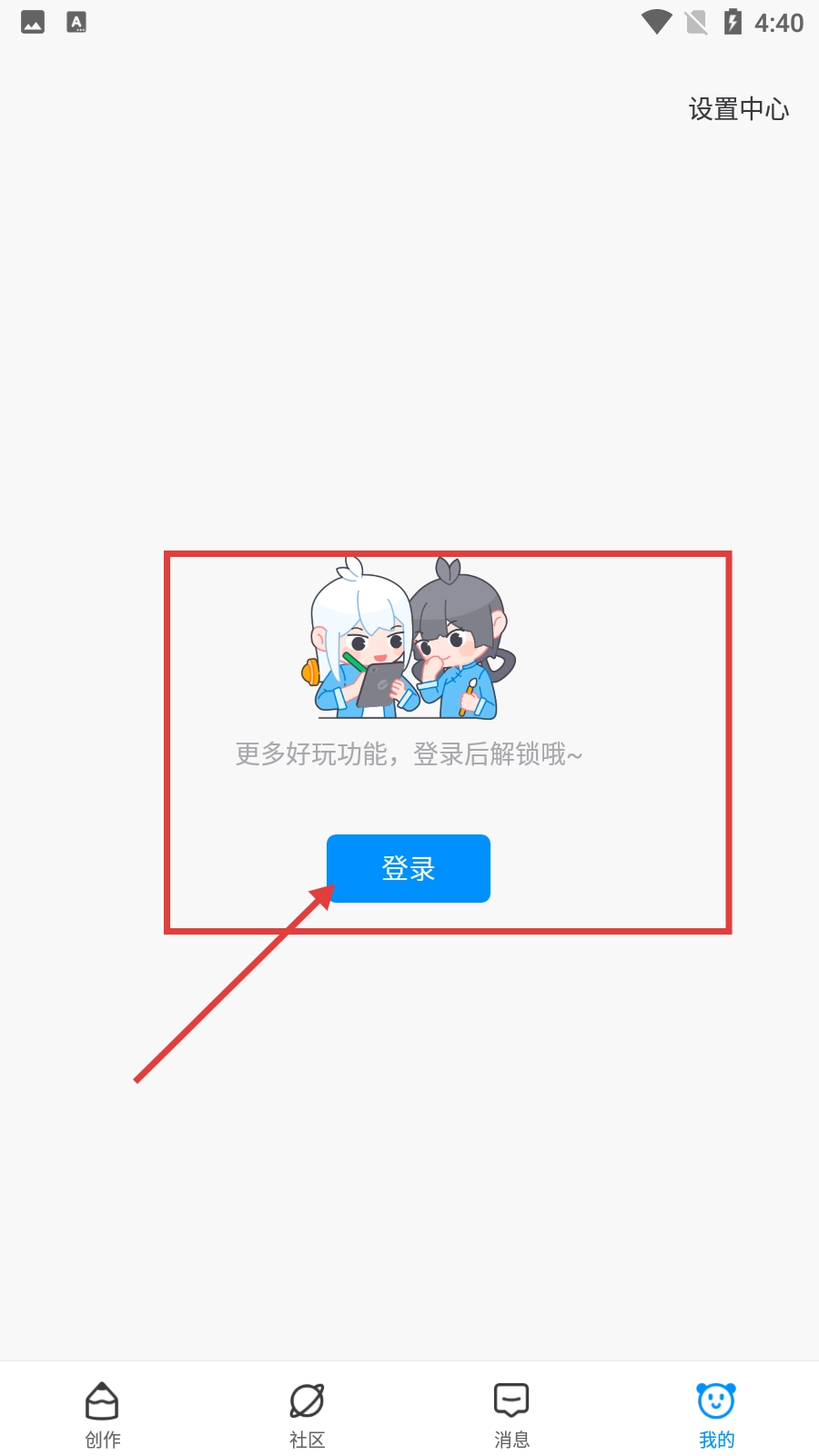 2、在个人页面,点击【登录】按钮,进入登录选择界面。