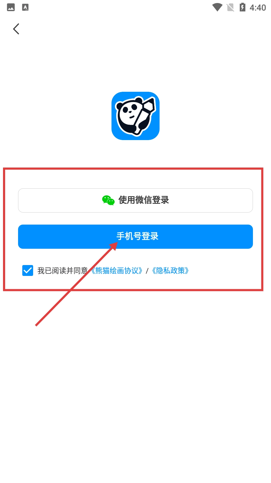 3、在登录选择界面,点击【手机号登录】,进入密码登录页面。