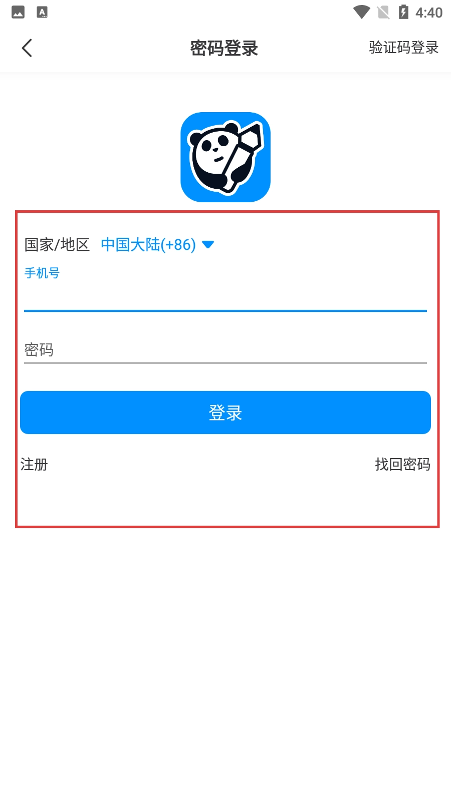 4、在密码登录页面,输入手机号、密码后点击【登录】按钮完成登录。
