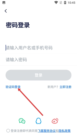 3、在登录页面,点击【验证码登录】选项,切换到验证码登录模式。