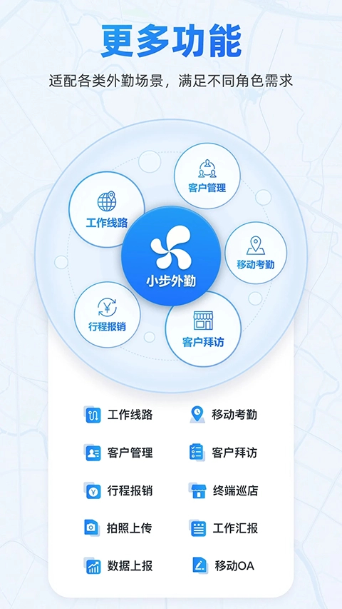 3、优化企业形象:小步外勤客户端拥有专业的界面设计与全面的功能支撑,能够优化企业的形象与品牌价值,提高客户对企业的信任程度。