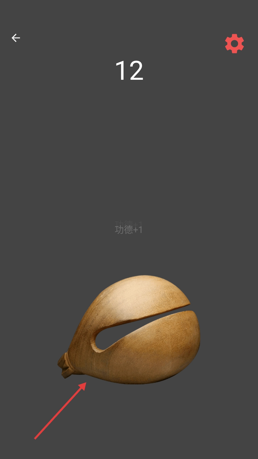 4、在木鱼界面,点击木鱼图标可进行操作,界面会显示操作次数,同时可通过右上角设置图标进行相关设置。