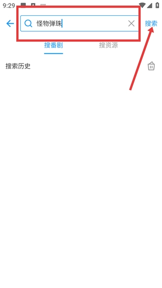 2、在搜索框中输入【怪物弹珠】,点击右侧【搜索】按钮,获取相关番剧结果。