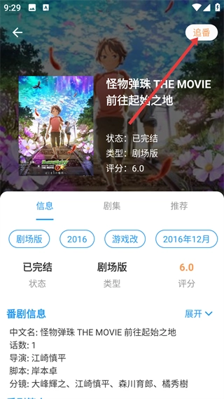 4、在番剧详情页,点击右上角【追番】按钮,即可将该番剧加入追番列表。