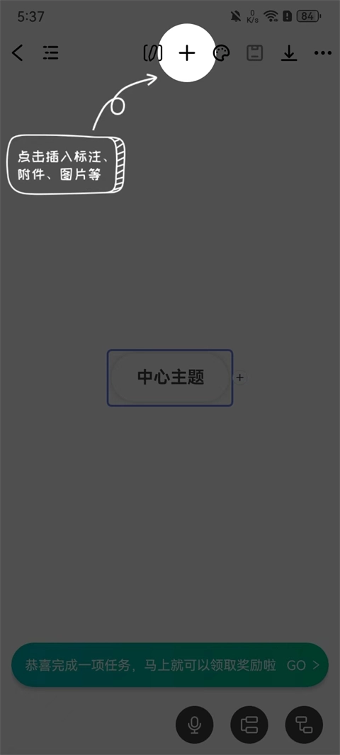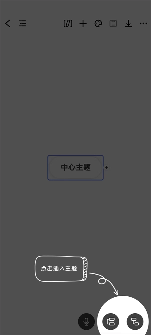 在空白舞台中心会显示【中心主题】选项,我们双击可修改其内容和样式,右击选择【主题】即可为其增加分支主题。