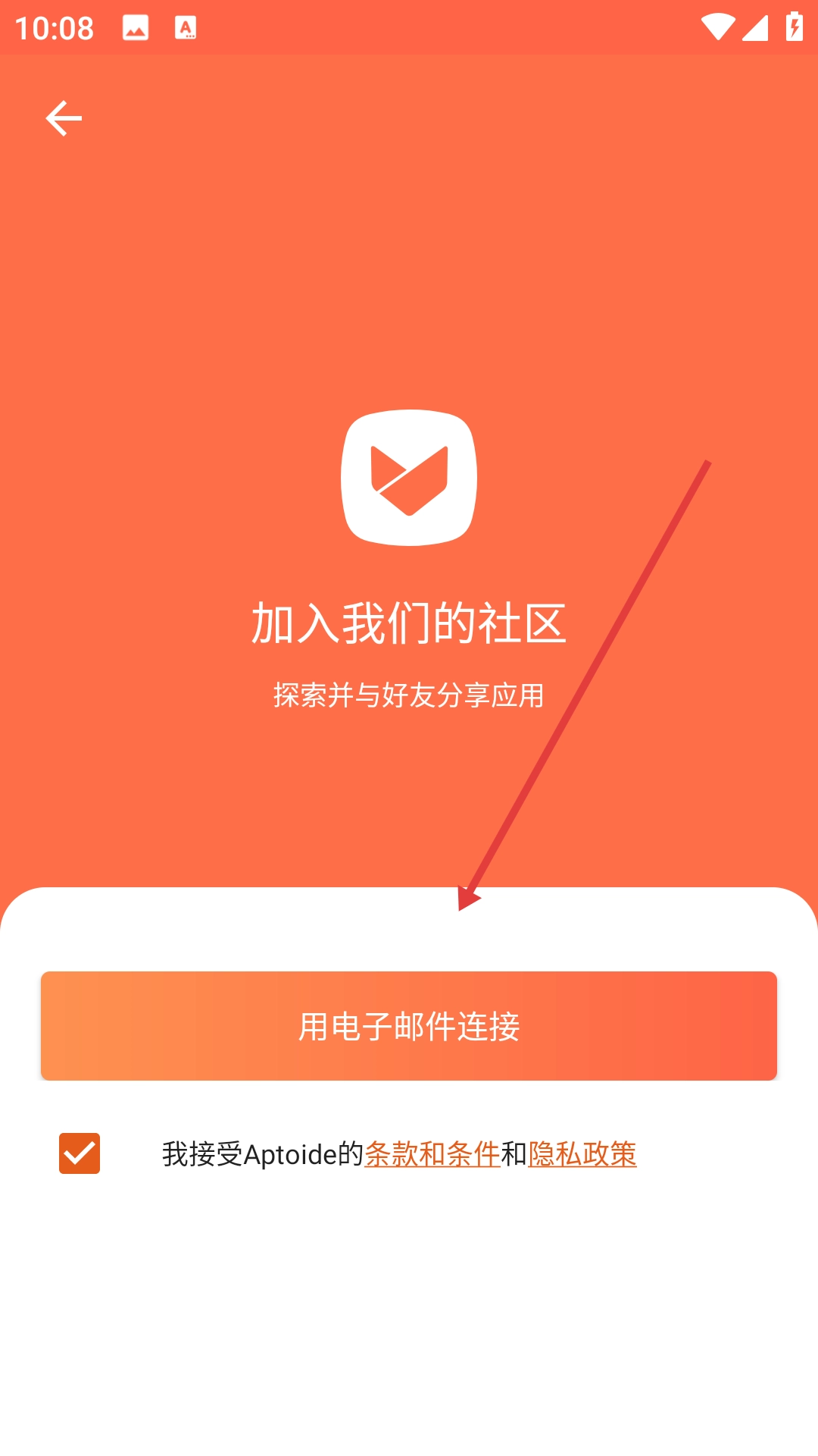 4、在登录注册流程页面,选择【用电子邮件连接】,并接受条款和隐私政策,完成加入社区的操作。