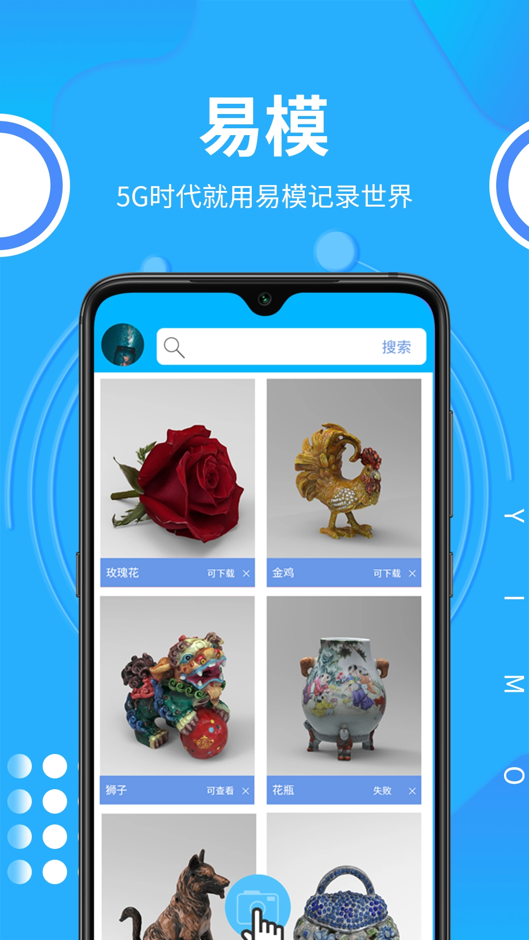 易模是武汉博雅弘拓科技有限公司推出的手机3D建模应用,这款软件能把手机变成便捷的3D扫描工具,用户只需进行简单的拍摄与扫描操作,就能迅速创建出高品质的彩色3D模型。