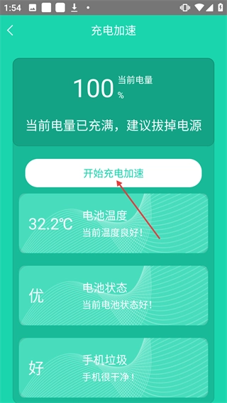 2、在充电加速页面点击【开始充电加速】,启动充电加速功能。