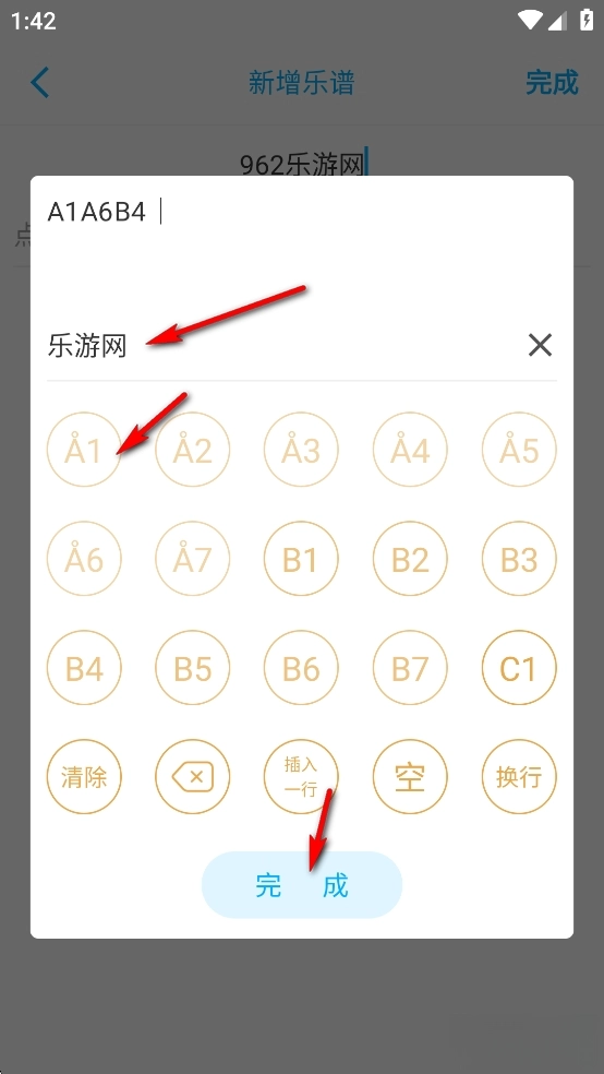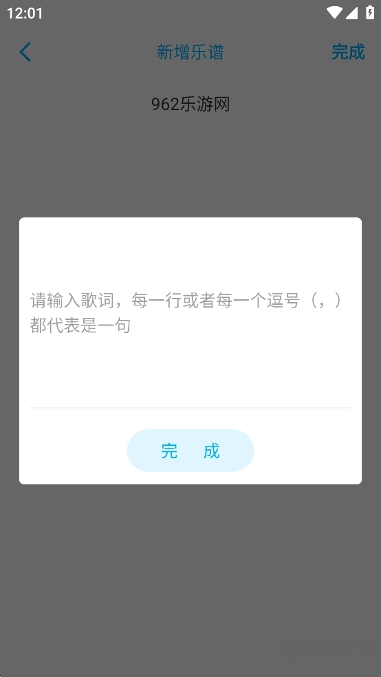 输入音符/歌词,点击【完成】