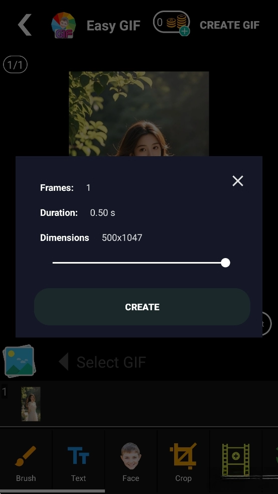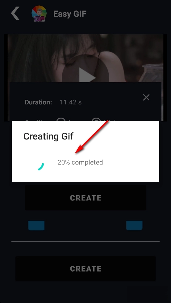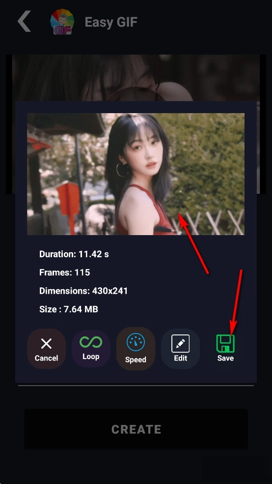 选择gif图片质量和尺寸,然后点击【CREATE】