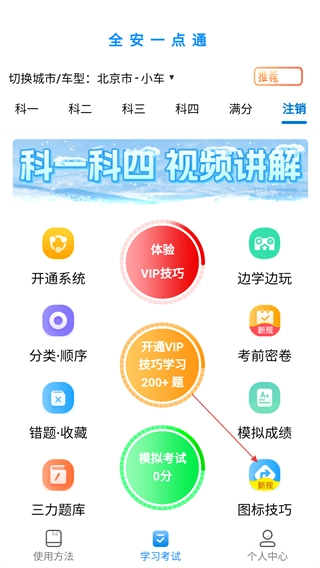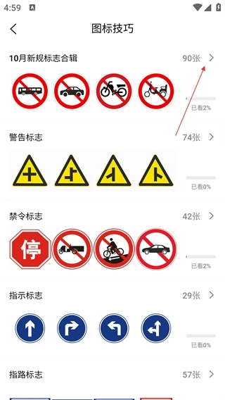 1、在主界面找到并点击【图标技巧】选项,即可进入交通标志的相关学习页面。