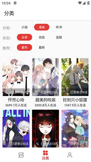 1、启动平行阅读App后,点击底部导航栏中的【分类】选项,就能查看各类小说分类,快速找到符合自己兴趣的内容。