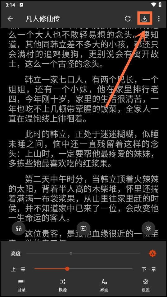 1、选定喜欢的小说并进入阅读页面,准备缓存内容以便离线阅读。