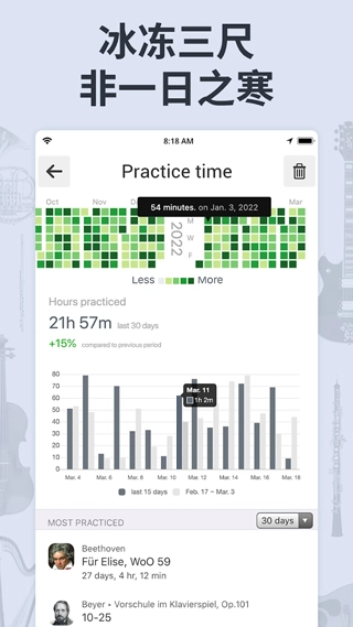 5. 历史记录与统计:记录用户的调音和节拍使用历史,提供练习时长统计,帮助用户追踪进步和调整练习计划。