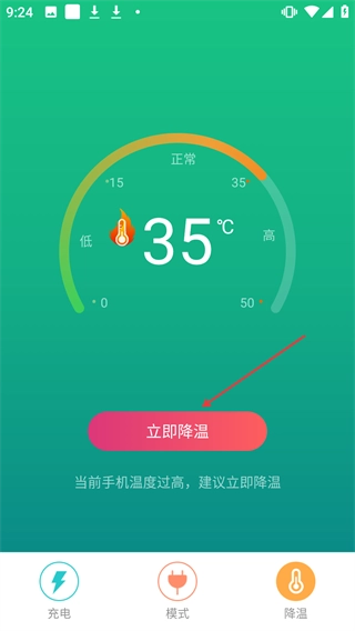 2、当手机温度过高时,点击【立即降温】按钮,可启动降温操作。