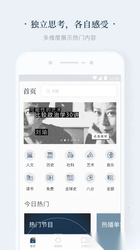 看理想是个很棒的文化知识平台。这里内容丰富,涵盖多领域,能满足多样求知欲。创作者阵容强大,梁文道等名家齐聚。互动模式新颖,突破常规,能让用户与创作者紧密相连,感受文化魅力,获取深度快乐。