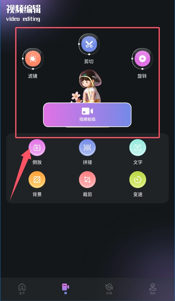 2、“编辑”页面提供了从“剪切”、“旋转”到“滤镜”、“背景”的全面工具,更有“文字”、“变速”等创意选项,让视频编辑变得简单又有趣呢。