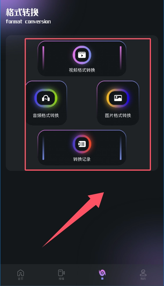 3、遇到格式不兼容?“转换”页面提供专业的“视频格式转换”、“音频格式转换”和“图片格式转换”服务,清晰的“转换记录”能防止文件丢失呀。
