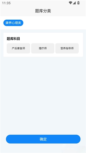 3、之后在“题库分类”中来选择需要的题库科目,点击“确定”按钮来进行下一步。