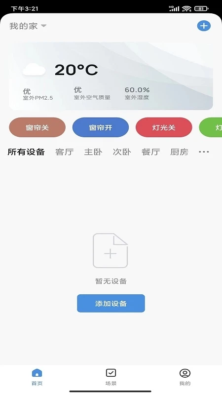 1、在设备管理首页,当前页面显示“暂无设备”,点击【添加设备】按钮,即可进入设备添加界面。
