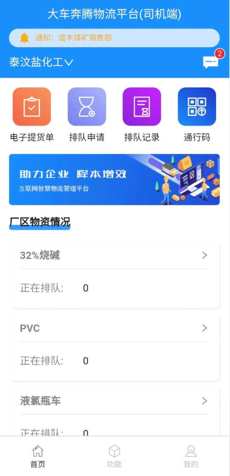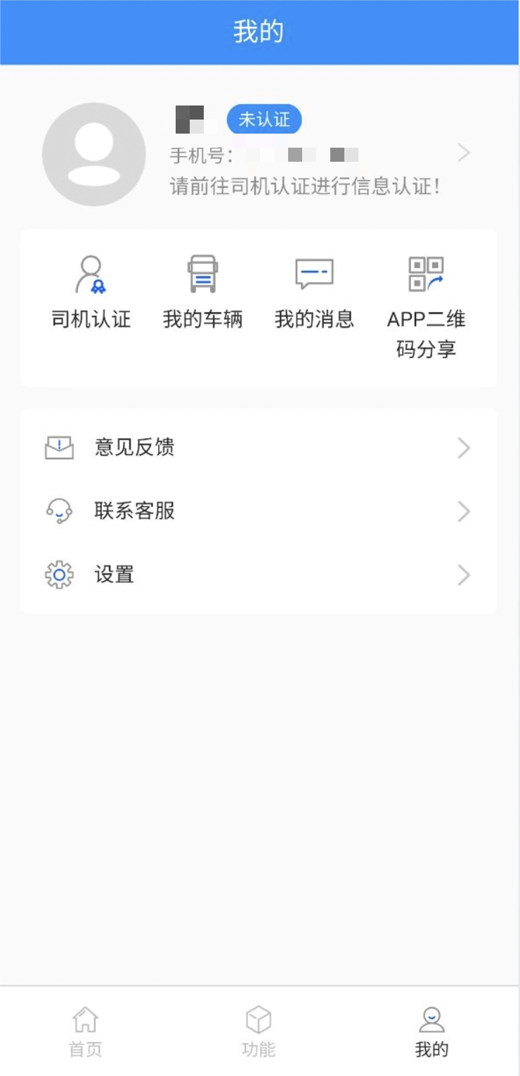 1、打开【大车奔腾物流平台(司机端)】,在首页点击底部的【我的】按钮,即可进入个人相关操作页面。