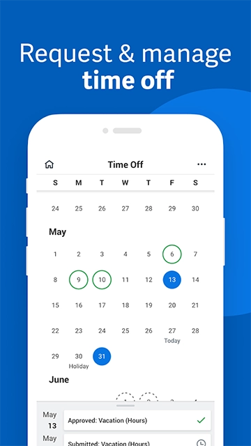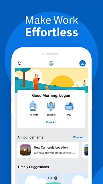 Workday安卓版专为远程工作模式设计,用户无论身处何地都能通过手机轻松接入系统,处理请假、加班、报销、工资单等事务,实现无缝的工作对接。