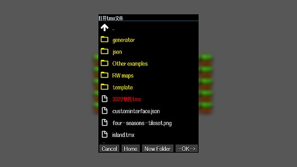 2、然后点击打开按钮,选择后缀名为.tmx的地图文件,点击OK即可完成导入。