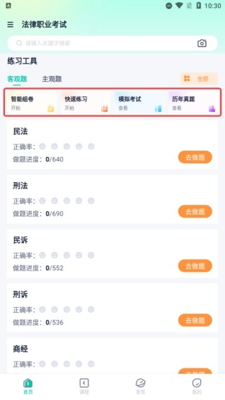 2.专业题库:律学法考配备了海量题库资源,涵盖历年真题、模拟试题等多种类型,助力用户熟悉考试形式并提升解题能力。