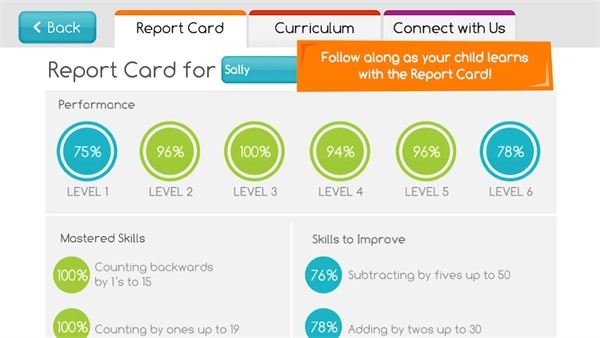 包含一份综合成绩单,家长与老师可借助该成绩单对孩子的游戏过程进行监控,同时挖掘新的练习需求。