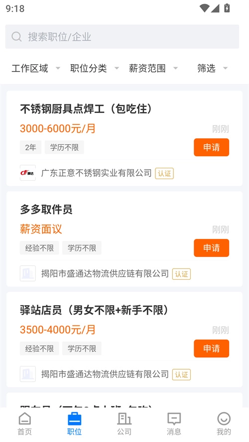 1、招聘信息丰富多样:揭阳直聘汇聚了揭阳本地各行业的职位资源,涵盖全职、兼职、实习等多种类型,用户能够轻松找到契合自身需求的工作机会。