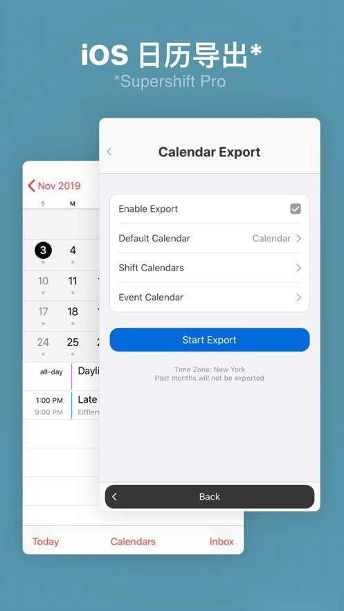 将班次导出到 iOS 日历(例如 Google 或 iCloud),与朋友和家人分享您的日程安排。