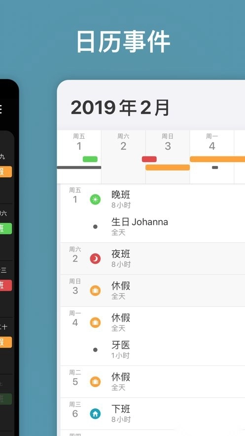 生日、约会和其他来自外部日历(例如谷歌或 iCloud 日历)的事件可以与您的班次一起显示。